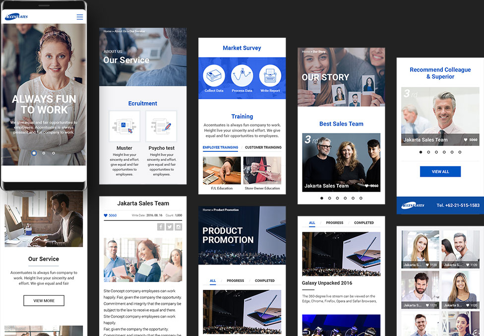다양한 플랫폼에서의 관리자의 용이한 접속을 위해 여러 종류의 사이즈로 제작하여 접속 기기에서 Accentuates 웹사이트를 확인 및 관리할 수 있도록 제작.